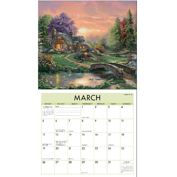 The Thomas Kinkade Studios 2023 Deluxe Wall Calendar features stunning full-color artwork by Thomas Kinkade Studios and plenty of room to add your own events, appointments, and notes on each of the twelve monthly grids. This calendar comes packaged in a sturdy, matching, plastic-free envelope.
