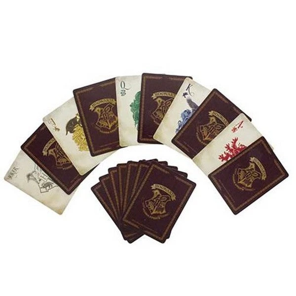 Deal in the magic with this set of Harry Potter Hogwarts Playing Cards, the ultimate in playing card trickery! Inspired by the four houses of Hogwarts School of Witchcraft and Wizardry, the deck features suits in the designs of Gryffindor, Hufflepuff, Ravenclaw, and Slytherin, making this a fun gift for any fan of the famous boy wizard. The deck of cards comes in a metal embossed burgundy tin, complete with the iconic crest of Hogwarts, and even features the school’s Latin motto “Draco dormiens nunquam titillandus” (Never Tickle a Sleeping Dragon). This Harry Potter Hogwarts Playing Cards makes a great gift for fans of Harry Potter!