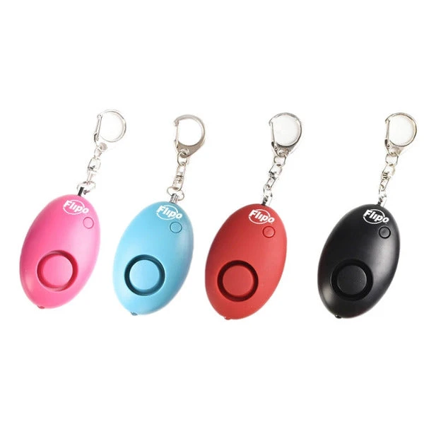 The Flipo Mini Safety Alarm is the perfect, compact, personal safety alarm for peace of mind. The Mini Safety Alarm features a built-in LED flashlight and powerful 100 dB alarm that is easily activated. Simply pull out the keychain clip to activate the alarm, and reinsert to deactivate. Carry this dual personal alarm and light on your purse, keychain, or backpack with the convenient keychain clip. Available in black, pink, red and teal.