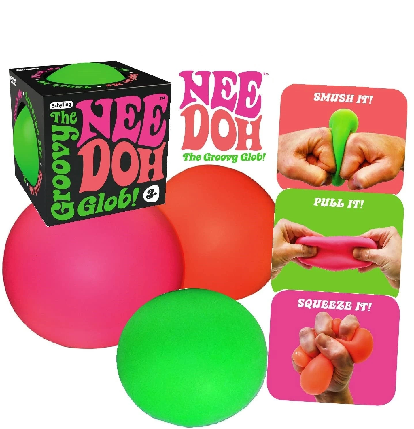 This stress ball will help you mellow out! Feeling Stressed? Then you knead Nee-Doh! Grab a glob and give a squeeze, a squish,a pull, or a smush. The experience will blow your mind, soothe your soul, and have you feeling groovy in no time!