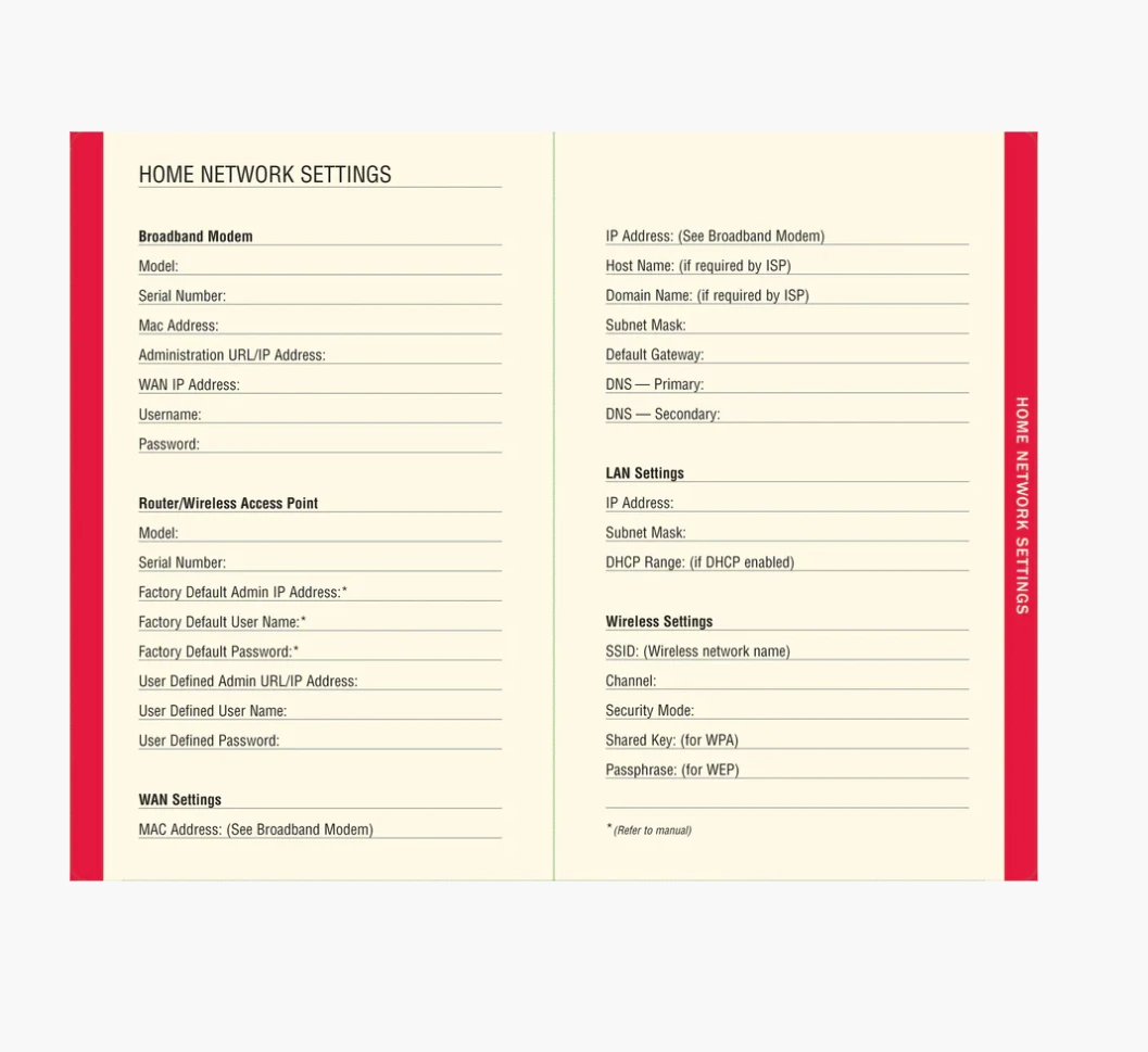 You can also make notes about home network configurations, software license numbers, etc., in pages in the back of the book.